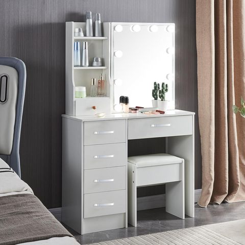 Moderno bianco Gloss trucco vanità tavolo illuminato specchio pannello di legno medicazione scrivania per bambini signore camera da letto con stoccaggio