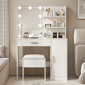 Moderna toletta in legno MDF con specchio a LED Smart principessa Vanity per il trucco e lo stoccaggio per camera da letto e uso domestico